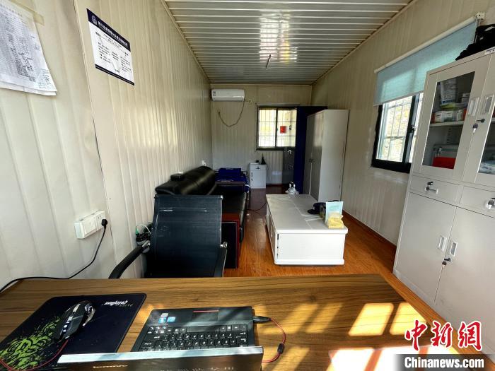 圖為曲桑邊境檢查站民警進行證件查驗登記、執勤裝備防疫物資儲備工作方艙。 鐘鑫 攝