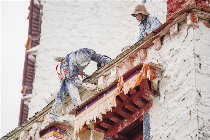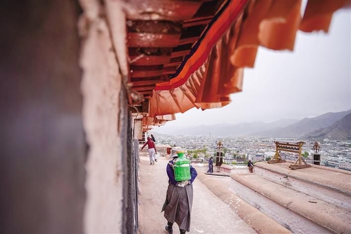 隨著布達拉宮“粉刷季”開始,很多市民群眾自發前往布達拉宮,加入“粉刷大軍”的隊伍。