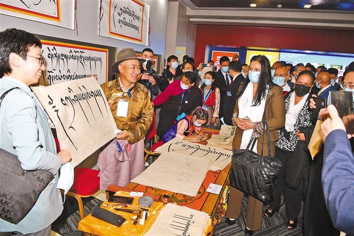 清朝道光皇帝冊封十一世達賴喇嘛金冊、《中央人民政府和西藏地方政府關于和平解放西藏辦法的協(xié)議》等一件件歷史文物,充分證明了西藏自古以來就是祖國不可分割的一部分。藏文書法、傳統(tǒng)手工藝和酥油茶等高原飲食文化,充分展示了西藏與祖國各地在漫長歷史長河中的各民族廣泛交往、全面交流、深度交融。