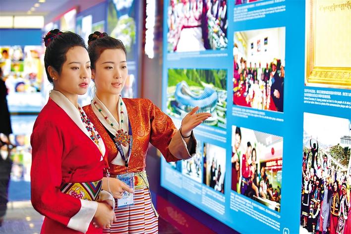 一幅幅精美絕倫的照片、一幀幀生動直觀的視頻畫面、一個個獨特壯觀的實物模型、一次次活潑有趣的互動展示,全面、立體、生動地向中外嘉賓展示了西藏和平解放70年來經濟社會發(fā)展的歷史性成就,展示了中國共產黨團結帶領西藏各族人民創(chuàng)造了彪炳千秋、利澤萬代、亙古未有的歷史功績。