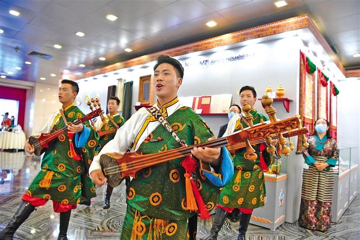 清朝道光皇帝冊封十一世達(dá)賴?yán)锝饍浴ⅰ吨醒肴嗣裾臀鞑氐胤秸P(guān)于和平解放西藏辦法的協(xié)議》等一件件歷史文物,充分證明了西藏自古以來就是祖國不可分割的一部分。藏文書法、傳統(tǒng)手工藝和酥油茶等高原飲食文化,充分展示了西藏與祖國各地在漫長歷史長河中的各民族廣泛交往、全面交流、深度交融。
