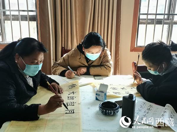 “村里有好多人喜歡書法,恰好城關(guān)區(qū)開展新時(shí)代文明實(shí)踐站·一村一特色文化品牌村(社區(qū))創(chuàng)建活動(dòng),我們就想著往這個(gè)方面打造一下?!辈檀宓谝粫浲恋锹迳=榻B。如今,每逢周六,村里會邀請拉薩市文聯(lián)、拉薩市書法家協(xié)會的書法名家,為熱愛書法的村民們傳授技藝。