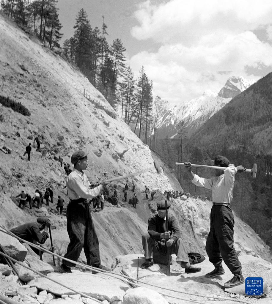 這是1954年筑路大軍修筑康藏公路(1955年改名為川藏公路)的資料照片。新華社發