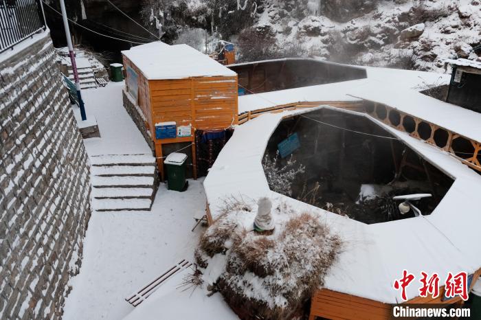 冬日,德仲溫泉周邊被積雪覆蓋。25日深夜,記者體驗時,溫泉池內水霧繚繞,抬頭便可以看到夜空中星星閃爍,十分奇妙。