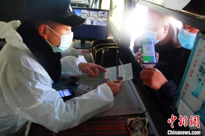 圖為2021年2月7日,那曲市公安局乃吉溝一級公安檢查站民警開展防疫檢查。資料圖 西藏自治區公安廳供圖