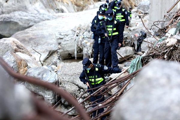 移民警察沿著口岸兩翼進行日常巡邏。鄒興國攝