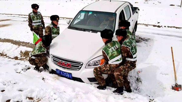 據該支隊領導介紹:“臨近春節,過往的車輛比較集中,自然環境也非常惡劣,暴風雪時有發生。現在,沿途背陰路段暗冰比較厚,時不時還有大雪封路。為了有效應對,我們官兵日夜值守在川藏線20多個保通救援點上,確保返鄉群眾安全通行。 ”