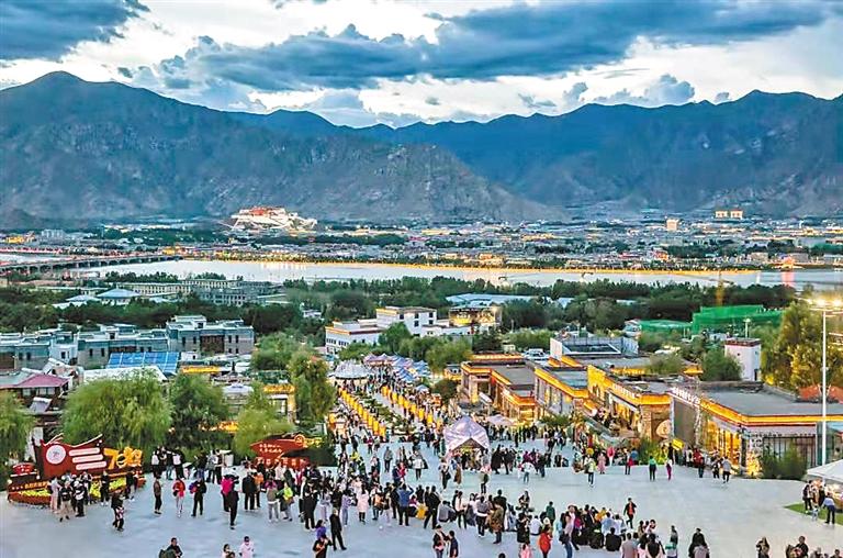夜色漸濃,位于拉薩河畔寶瓶山上的文成公主劇場,被成片的火燒云染成了耀眼的橙,熙攘人潮,暮色流光,劇場下方的慈覺林藏院風(fēng)情街更是人潮涌動。近年來,隨著冬季旅游政策的不斷推進,有效促進了西藏全季、全時旅游的發(fā)展,而處于夏季旅游黃金時期的西藏旅游則更加火爆。作為西藏文化旅游的靚麗名片,《文成公主》實景劇引來了更多游客前來觀看。