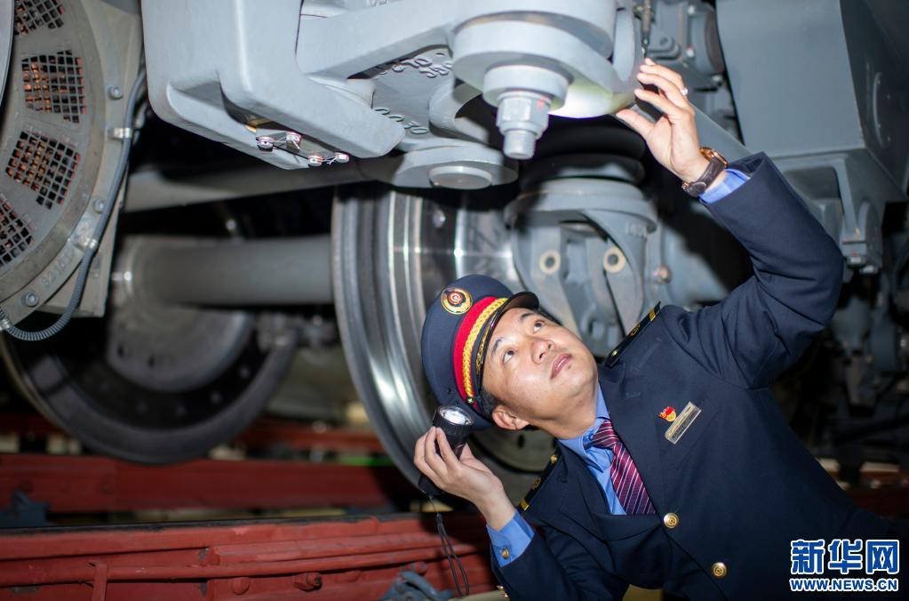 1月17日是春運首日,早上六點半斯朗旺扎便已辦理完出勤手續,隨后便進行日常動車制動、走行部等日常檢查,確認動車狀態良好后將列車駛出格爾木機務段拉薩機輛整備中心大庫。