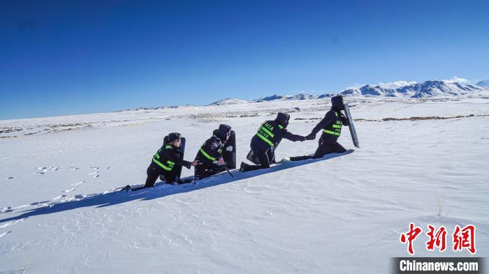 又經過2個多小時的艱難跋涉,巡邏隊終于抵達目的地點位。勘察、鏟雪、描紅……一個環節也不能出錯,界碑就是生命,就是戍邊人的信仰。