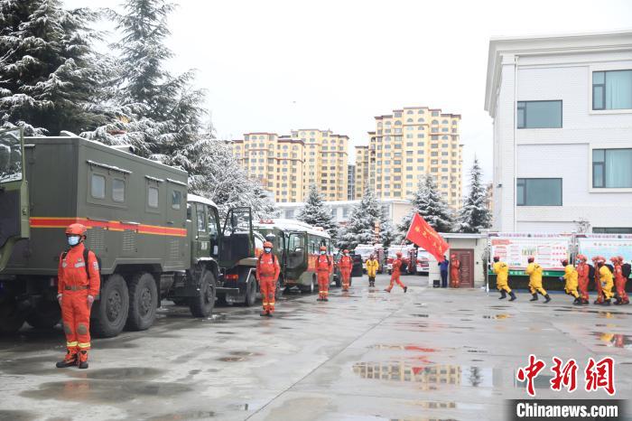 圖為消防員集結出發。索朗旺久 攝