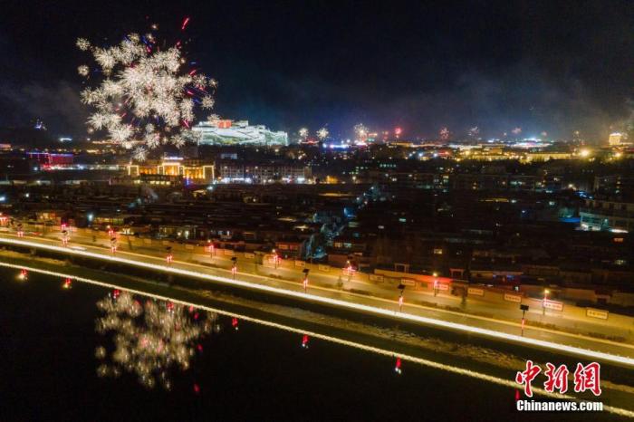3月1日是藏歷12月29日,按照藏族傳統習俗,當天晚上藏族家家戶戶吃“古突”(一種面食,包有不同寓意的各種餡料),迎接藏歷新年。圖為“古突”之夜,西藏拉薩布達拉宮周邊煙花璀璨。 中新社記者 江飛波 攝