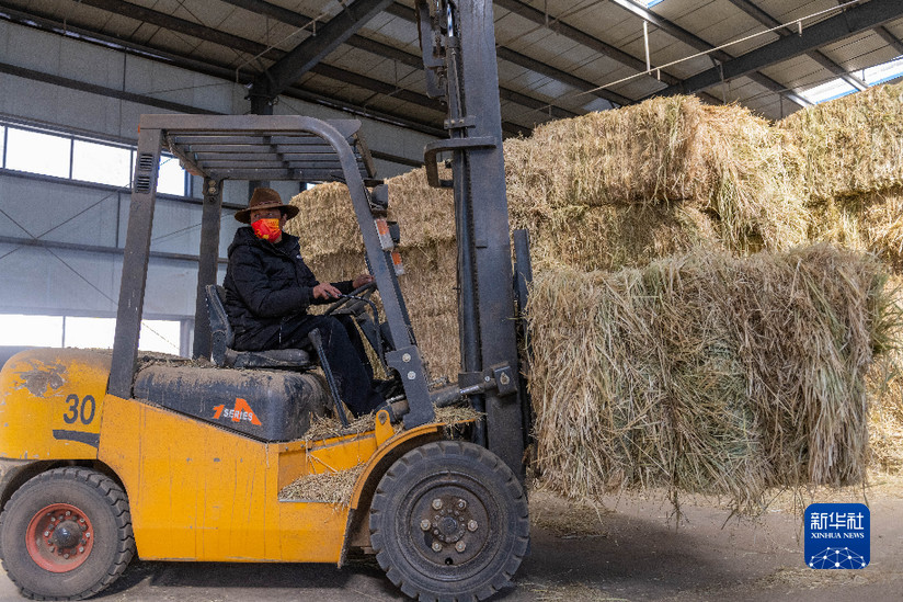 貢培在西藏娘亞牦牛養殖產業發展有限責任公司的飼草料倉庫工作(3月30日攝)。新華社記者 周荻瀟 攝