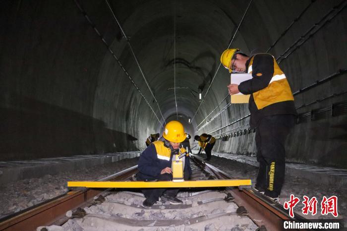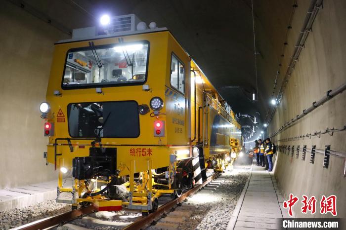 圖為鐵路大型養(yǎng)路機(jī)械搗固車在西藏拉林鐵路隧道內(nèi)。祁國慶 攝