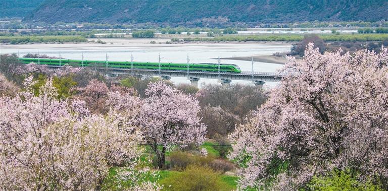 拉林鐵路迎來通車運營以來的第一個春天。復興號動車每日穿梭于雅魯藏布江畔的層巒疊嶂間,與兩岸盛開的桃花共同構成一幅優美畫卷。