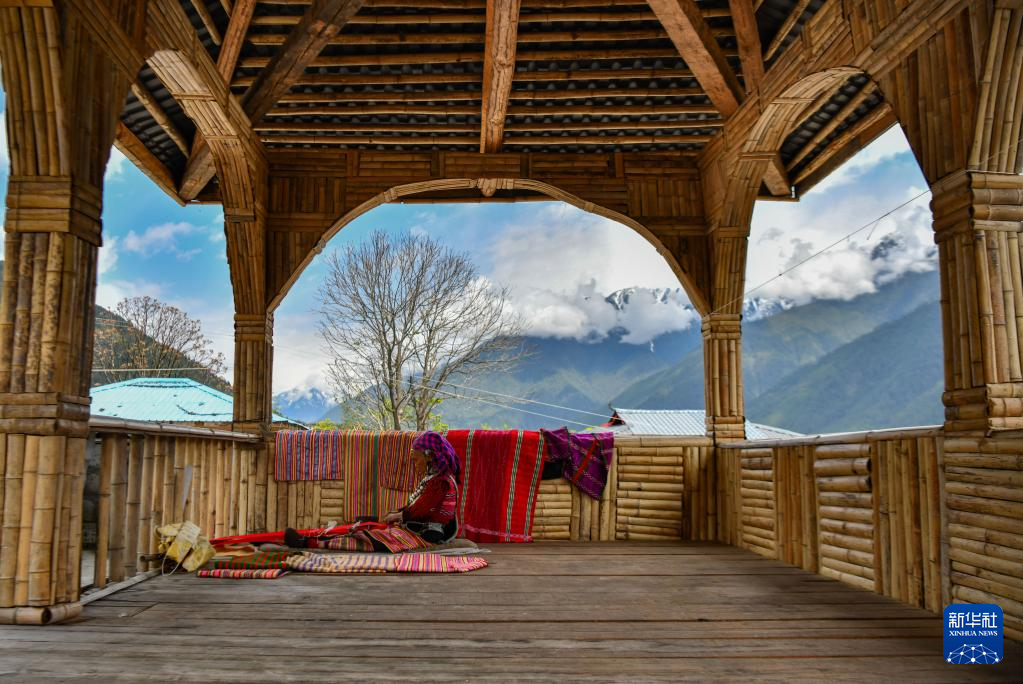 今年72歲的本央老人,是僜人服飾制作技藝西藏自治區級非遺傳承人。在西藏林芝市察隅縣沙瓊村,老人身著傳統的僜人服飾,在自家的涼亭里編織布料。