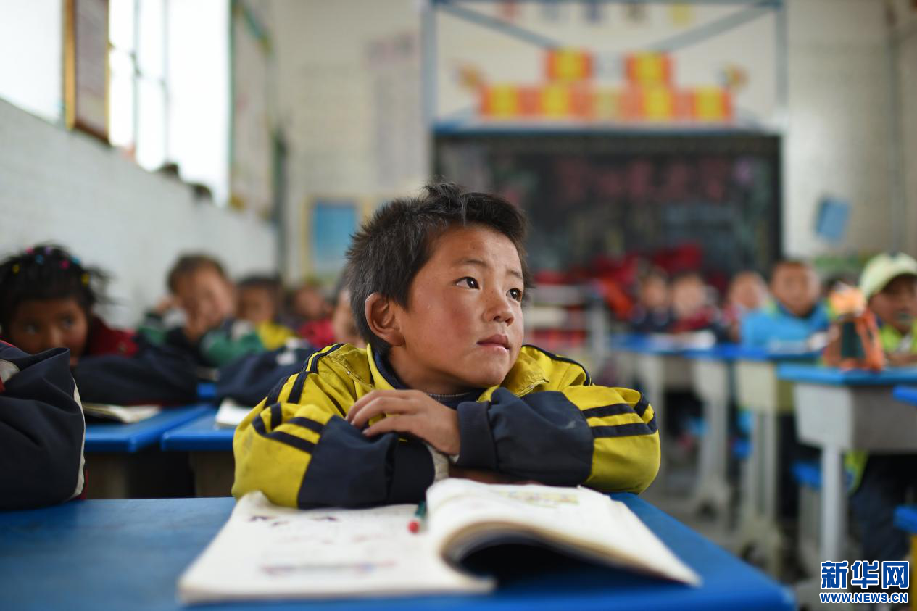 多油村中心小學的學生在聽課(4月21日攝)。新華網 旦增努布攝