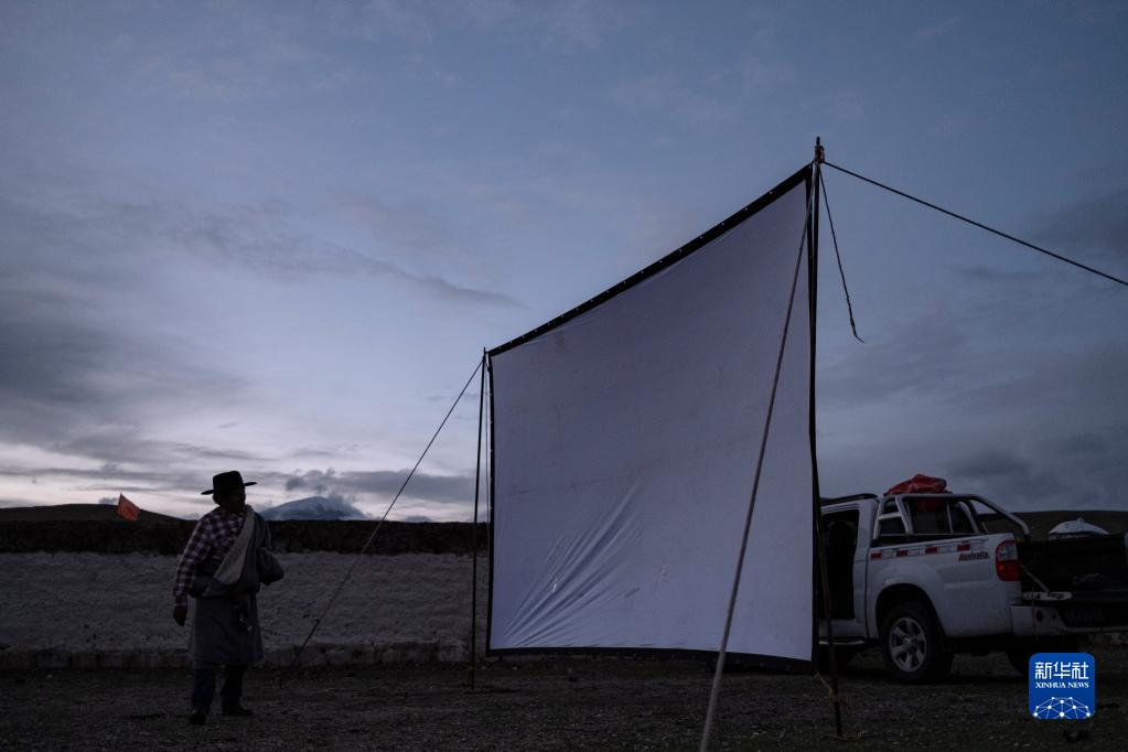 在西藏當雄縣巴靈村,羅珠在檢查搭建好的幕布(5月20日攝)。新華社記者 孫非 攝
