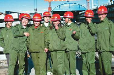 2005年,雪域高原上第一條天路——青藏鐵路安多軌排生產基地,26名35歲以下的“鐵二代”女青年組成的女班。