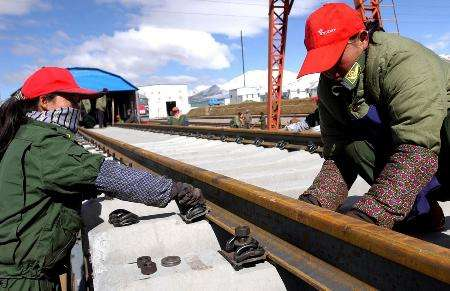姑娘們生產的最后一排軌落在了拉薩火車站。