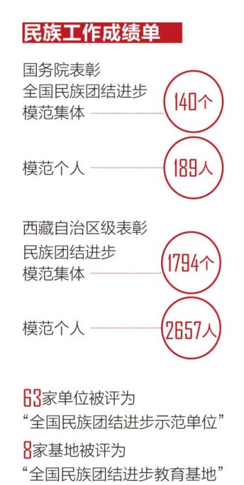 在西藏,民族團結(jié)家庭并不是個例,有不少個人和集體也為民族團結(jié)進步事業(yè)作出了突出貢獻。目前,西藏全區(qū)榮獲國務(wù)院表彰全國民族團結(jié)進步模范集體140個、模范個人189人;西藏自治區(qū)級表彰民族團結(jié)進步模范集體1794個、模范個人2657人;63家單位被評為“全國民族團結(jié)進步示范單位”,8家基地被評為“全國民族團結(jié)進步教育基地”。拉薩、日喀則、昌都、阿里、林芝5個市地成功創(chuàng)成“全國民族團結(jié)進步示范地(市)”。