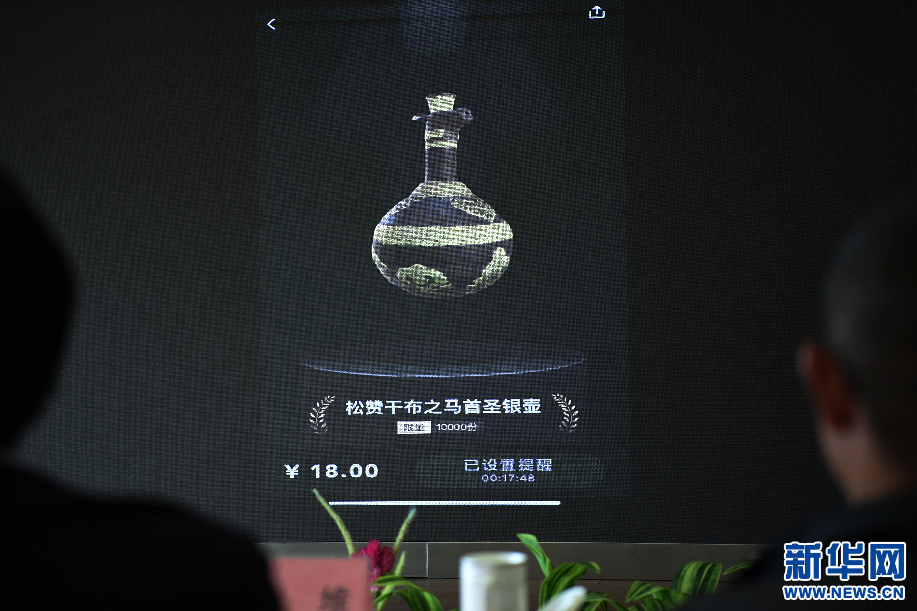 7月21日,用戶在手機(jī)端預(yù)約搶購西藏首個(gè)數(shù)字藏品《松贊干布之馬首圣銀壺》。新華網(wǎng)旦增努布 攝