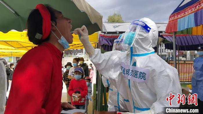 圖為西藏自治區人民政府駐成都辦事處醫院醫療隊在拉薩檢測點為民眾進行核酸檢測 西藏自治區人民政府駐成都辦事處醫院醫療隊 供圖