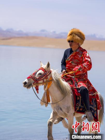 王軍強身著藏北牧民服裝,騎馬在申扎縣雄梅鎮江雄村留念。旦增羅布 供圖