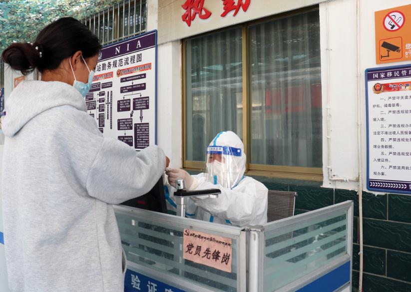 圖為西藏山南邊境管理支隊機關“黨員先鋒隊”移民管理警察在查驗人員核酸檢測報告。徐道超 攝