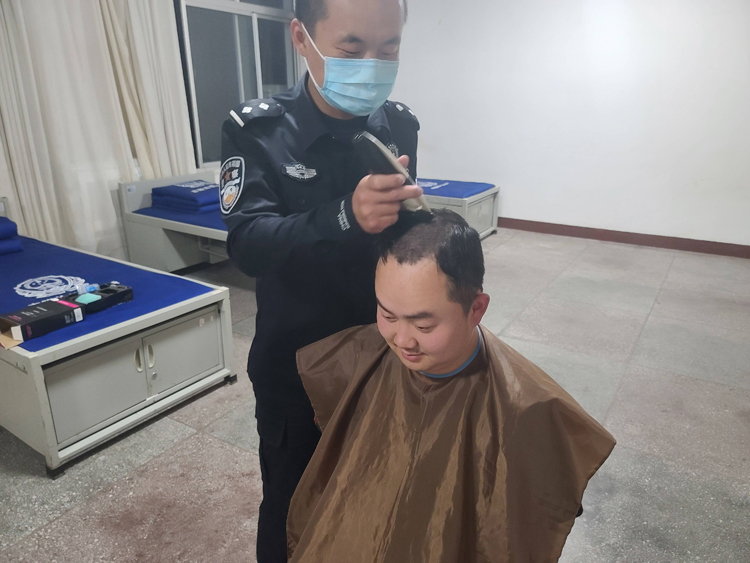 在隔離酒店執勤的副所長王士博,在完成工作后請同事幫忙給自己剃了個光頭,“當前疫情防控形勢嚴峻,天氣逐漸變暖,每天穿著防護服工作,一身都是汗?!蓖跏坎┱f,剃掉頭發后更加涼快,在節省時間的同時也能避免頭發沾染病毒,更加安全。