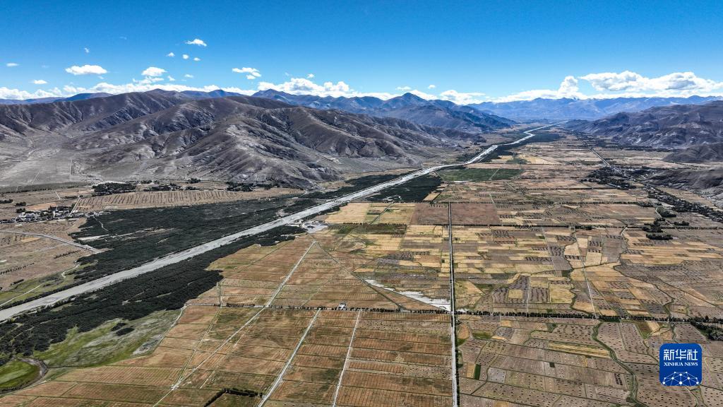 西藏日喀則江孜段富饒的農田(9月19日攝,無人機照片)。新華社記者 晉美多吉 攝