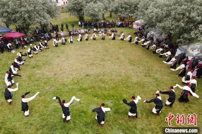 圖為西藏昌都丁青縣民眾跳鍋莊舞。 江飛波 攝
