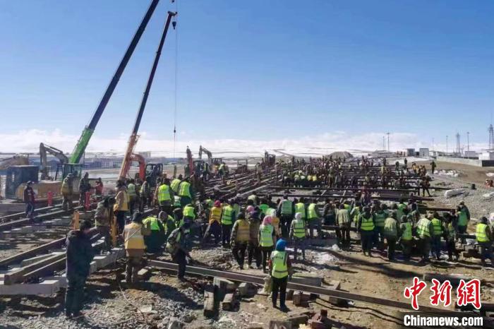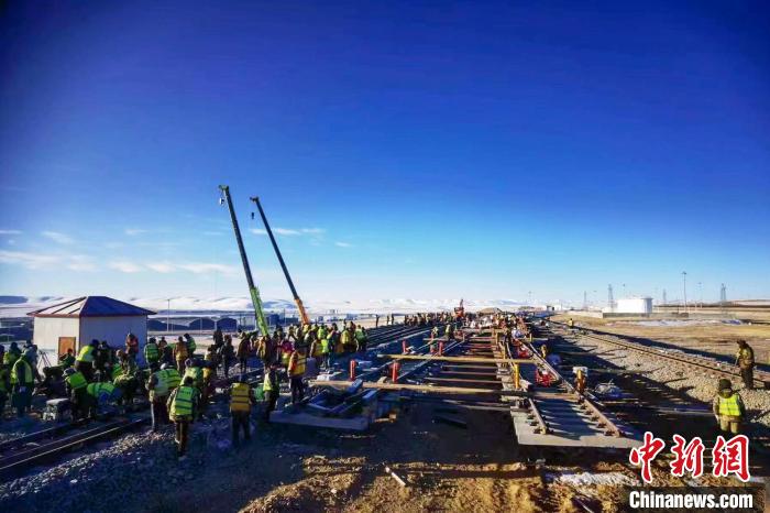 圖為海拔4500多米那曲車站道岔更換及信號系統改造施工現場。 國鐵青藏集團有限公司 供圖