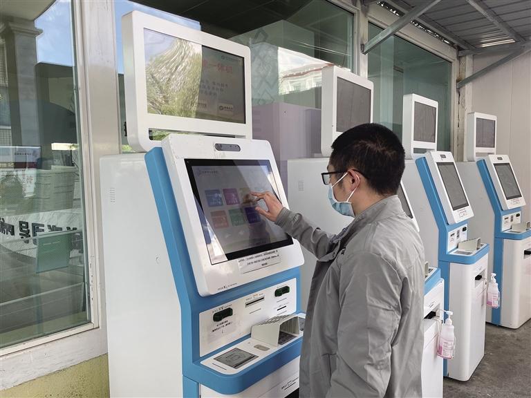 拉薩市民正在使用醫院內的一體機掛號。記者 趙越 攝
