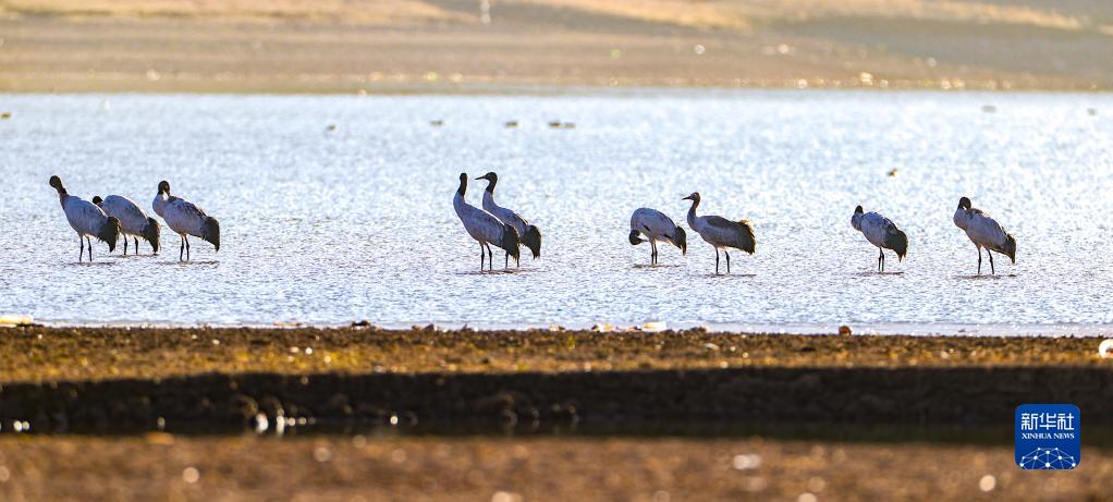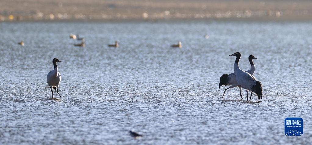在林周縣虎頭山水庫(kù)拍攝的黑頸鶴(11月6日攝)。新華社記者 姜帆 攝