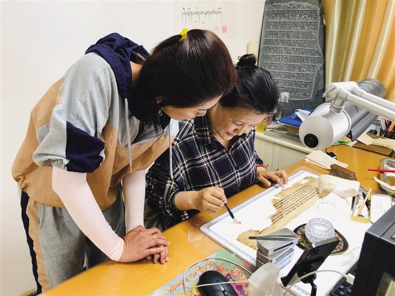 2015年自治區古籍修復中心成立以來,在國家圖書館和云南省圖書館等專業修復中心接受培訓實踐的修復人員積極投入到藏文古籍修復工作中,相繼完成了拉薩市墨竹工卡縣芒熱寺破損古籍的修復任務,修復古籍文獻共248葉,拍攝建檔496幅圖片,并把這部分完成修復的古籍文獻同目錄按正規程序移交給寺廟。完成了對山南市隆子縣加玉鄉強慶村白嘎寺的237函、3萬多葉的珍貴古籍文獻的整理、建檔和拍攝書影等工作。同時啟動了7000多葉破損古籍的修復工作,截至目前已完成4420葉破損古籍的修復,為進一步做好傳統古籍文獻的再利用和原生性保護給予了有力保障。