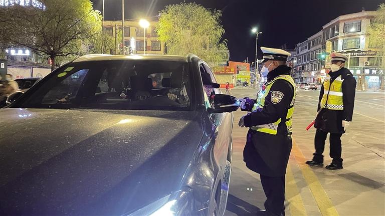 拉薩冬日的夜晚寒風凜冽。夜色中,一輛輛汽車有序通行,街道又恢復了往日的熱鬧。當天晚上9時許,記者跟隨拉薩市公安局交警支隊執法監督大隊民警前往江蘇大道,城南大隊的民警已經設置好路障、標牌,正在對過往車輛逐一進行詳細排查。“您好,請出示駕照。”“您好,請吹氣。”在民警的指揮下,車輛有序通過檢查點。市民扎西多吉駕車經過檢查點后告訴記者,在這么冷的天氣里,交警依然堅守在路面上,確實令人敬佩,應該為他們點贊。“我會牢記‘開車不喝酒,喝酒不開車’,也會自覺遵守交通法律法規,文明出行。”扎西多吉說。