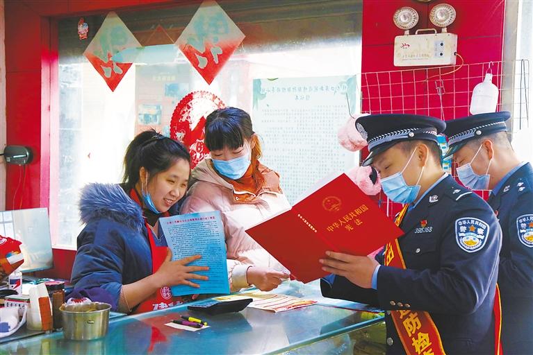 圖為西藏樟木口岸聶拉木出入境邊防檢查站民警為樟木鎮商戶講解憲法。