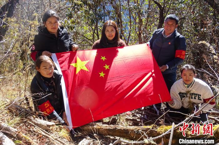 洛桑卓瑪每隔一段時間也跟隨鄉里組織的護邊護林隊,隨身攜帶國旗、干糧等踏上山路,開展護邊固防工作。到達預定地點后,巡護隊員們也宣誓“守邊固防有我在,請祖國和人民放心”。夫妻二人用各自的方式丈量邊關,共同守邊固土。