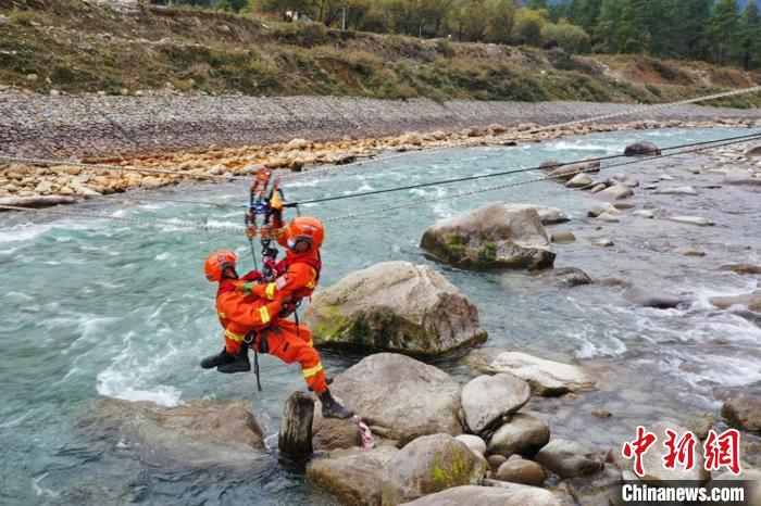 繩索渡河救援訓(xùn)練現(xiàn)場(chǎng)。 唐世博 攝