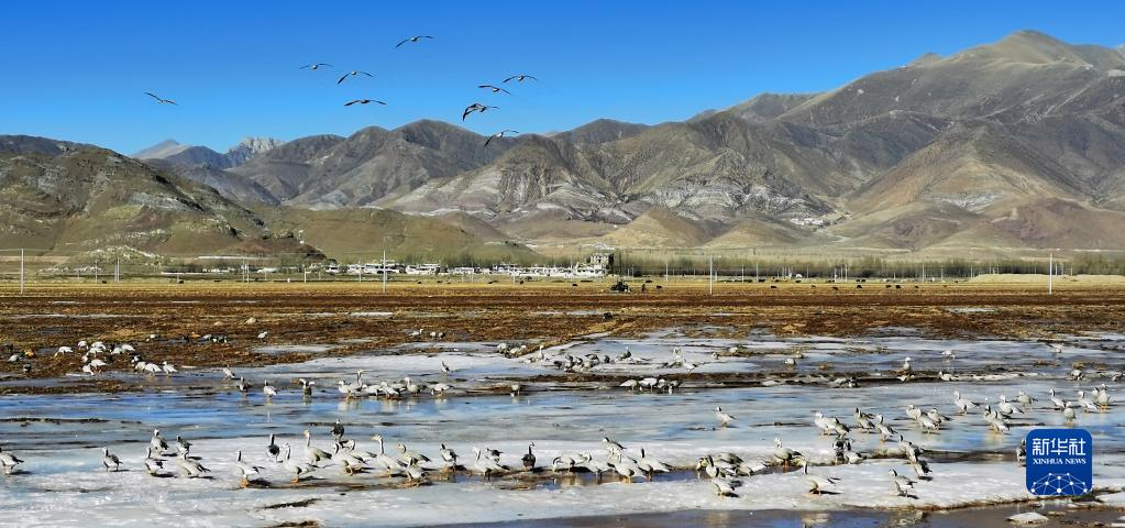 冬至過后,雪域高原進入一年中最寒冷的時段。在雅魯藏布江畔、拉薩河谷、高原湖泊和廣袤的田野里,大批越冬的候鳥自由自在覓食、翱翔,黑頸鶴、斑頭雁、赤麻鴨等候鳥的叫聲此起彼伏,在寒冬里奏響和諧生態交響曲。