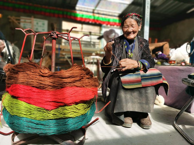 除了賣產(chǎn)品,次仁曲珍也心系十里八村的其他群眾。“我們的原材料(羊毛、羊絨),都是從周邊村子收購的。其實,以前很多老百姓家的羊毛要么自用,要么送人,幾乎很少出售。現(xiàn)在他們可以送到我這里,市場價7元—10元/斤?!惫爬系募徔椉妓嚺c珍稀羊毛(絨)材質(zhì)融合,是每一位阿佳用心編織的直抵人們內(nèi)心深處的柔軟,更是她們的五彩夢想。