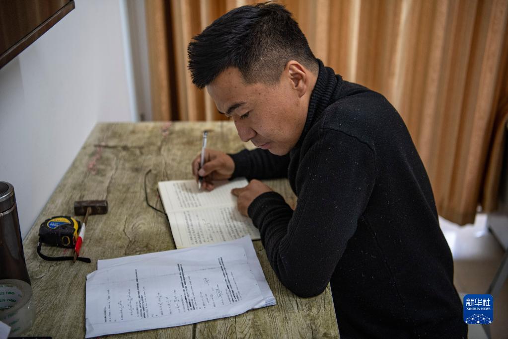 在拉林鐵路扎囊工電綜合工區(qū)的宿舍里,羅布在進行業(yè)務(wù)學(xué)習(xí)(1月12日攝)。新華社記者 孫非 攝