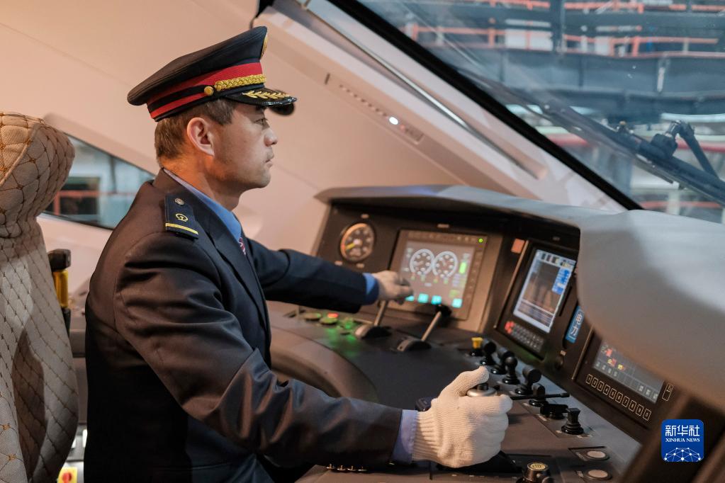 在拉薩機輛整備中心,黃起崗將動車組駛入停車位置(1月11日攝)。新華社記者 孫非 攝