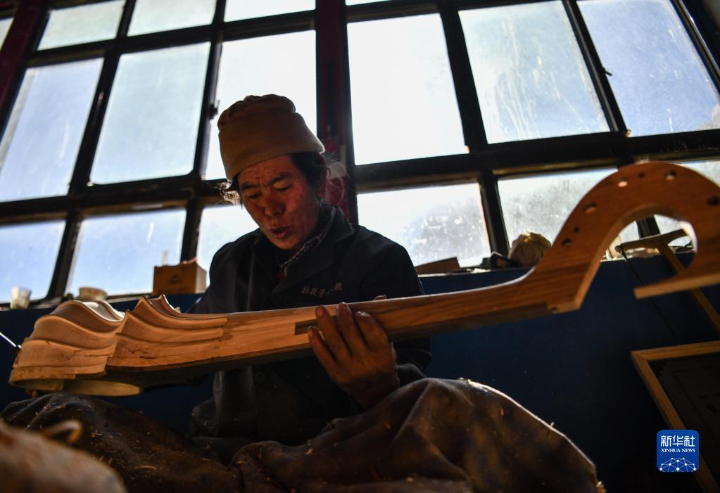 合作社的工匠在調試新制作的扎念琴(1月19日攝)。新華社記者 晉美多吉 攝