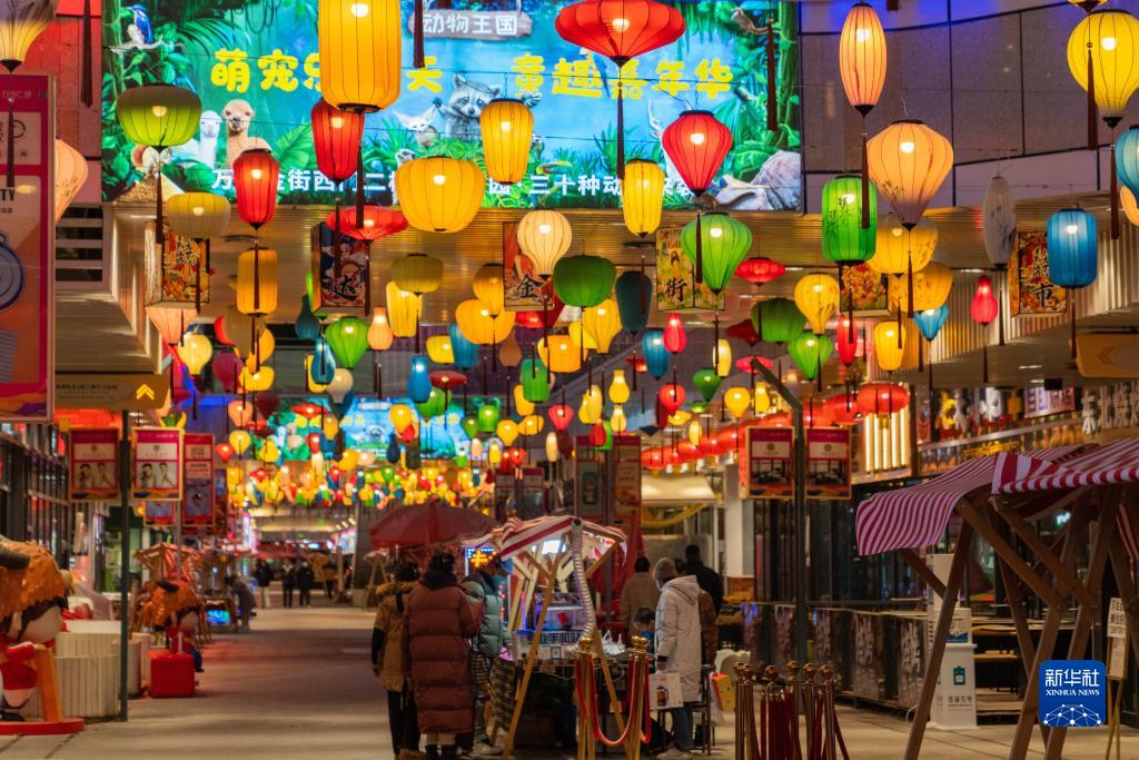 新年到來,拉薩城關萬達廣場商圈的樓宇外墻貼上了迎接2023年的喜聯,掛上了燈籠等裝飾品,喜慶氛圍濃厚。