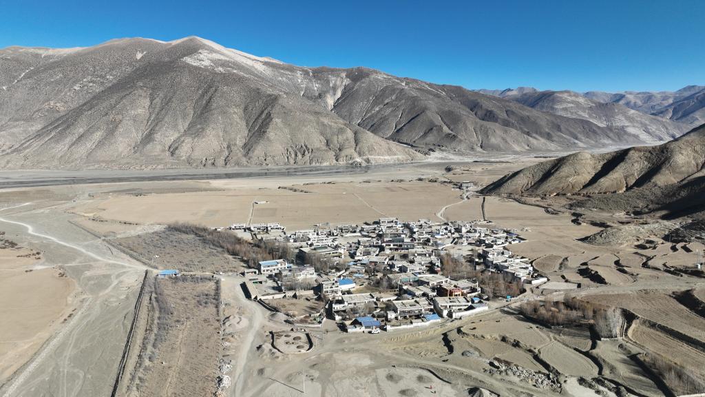 這是平拉家所在的西藏日喀則市拉孜縣扎西宗鄉雜村(1月22日攝,無人機照片)。新華社記者 晉美多吉 攝