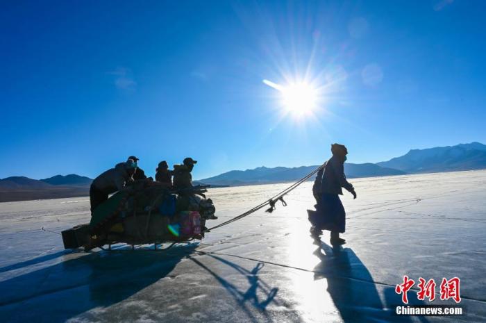 這個邊境小村3日迎來了一年一度的“趕羊”盛事。村民們將1400余只羊由岸邊通過厚實的冰面趕往湖心島牧場。普姆雍措被稱為“仙女之淚”,位于西藏山南市浪卡子縣,每到冬季極寒時,便是羊群轉牧場的好時機。