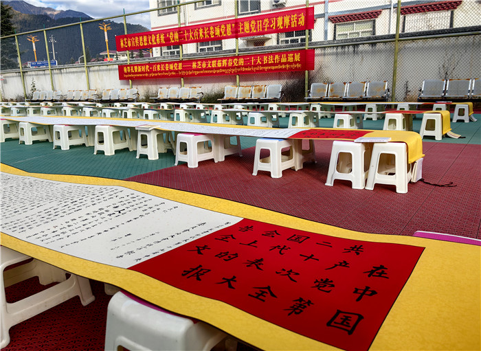 創(chuàng)新載體,全方位宣傳。林芝市統(tǒng)籌各類宣傳資源,線上線下同頻共振,全方位、多角度、寬領(lǐng)域、深層次宣傳黨的二十大精神和區(qū)黨委十屆三次全會、市委二屆三次全會精神,營造學(xué)習(xí)宣傳的濃厚氛圍。一是新聞宣傳強(qiáng)信心。林芝報、林芝廣播電視臺、西藏林芝網(wǎng)、微林芝等市屬主流媒體紛紛開設(shè)《學(xué)習(xí)貫徹黨的二十大》《新時代新征程新偉業(yè)》等多個專題專欄,持續(xù)推出學(xué)習(xí)貫徹黨的二十大精神相關(guān)報道。截至目前,共刊播《基層宣講員讓黨的二十大精神翩翩飛入百姓家》《軍民共話美好未來 繪就美麗鄉(xiāng)村新畫卷》等相關(guān)新聞2500余條。二是社會面宣傳筑同心。采取“屏、板、欄、幅”立體宣傳方式,在全市各級黨政機(jī)關(guān)和企事業(yè)單位大門LED電子顯示屏以及市、縣城區(qū)主要街道、跨街龍門、出租車頂燈、汽車站等公共場所的宣傳媒介上滾動播放自治區(qū)統(tǒng)一印發(fā)的宣傳標(biāo)語1.2萬余條次,更新懸掛國旗3.5萬余面,制作發(fā)放宣傳海報1.5萬張、宣傳品2500余個,形成抬頭可見、隨處可學(xué)的濃厚社會氛圍。察隅縣上察隅鎮(zhèn)遲巴村村“兩委”和駐村工作隊用彩色粉筆繪制黨的二十大、“新黨章”等主題黑板報,用畫筆向村民傳遞黨的最新政策,深受群眾喜愛。三是網(wǎng)絡(luò)宣傳聚民心。充分發(fā)揮新媒體平臺宣傳形式豐富的特點,持續(xù)推送重磅報道和重點文章,策劃打造一批融媒體產(chǎn)品,在全網(wǎng)迅速興起學(xué)習(xí)宣傳貫徹會議精神熱潮。市委網(wǎng)信辦策劃制作短視頻《學(xué)習(xí)黨的二十大精神 談心得感悟》、“林芝融媒”抖音號推出《二十大時光》微視頻,將鏡頭對準(zhǔn)二十大代表、基層黨員群眾,展現(xiàn)全市干部群眾積極向上的良好風(fēng)貌?!鞍鸵巳诿健倍兑籼柾瞥觥包h的二十大精神快問快答”系列活動,線上線下聯(lián)動學(xué)習(xí),推動黨的二十大精神入腦入心?!安煊缛诿健倍兑籼柌邉濋_展《鄉(xiāng)村振興正當(dāng)時》黨的二十大主題抖音直播活動,通過網(wǎng)絡(luò)直觀展現(xiàn)新時代察隅新農(nóng)村、新氣象、新希望。目前已開展7場直播活動,觀看人數(shù)達(dá)10萬人次。四是文藝宣傳暖人心。充分發(fā)揮市、縣(區(qū))、村三級文藝文化團(tuán)體作用,組織開展“深入生活 扎根人民”“幸福不忘共產(chǎn)黨 陽光路上夢起航”等各類文藝文化活動,精心打造文藝精品力作,用文藝活動、文藝作品溫暖人心。截至目前,各級文藝演出隊開展文藝匯演293場次,參與人數(shù)4.2萬余人次;創(chuàng)作推出音樂作品《沐浴幸?!?、攝影作品《我和國旗》、書法美術(shù)作品《建功新時代 奮進(jìn)新征程》、文學(xué)作品《黨的光輝照萬家》等文藝作品300余個。波密縣完全小學(xué)在崗云杉林景區(qū)組織開展“學(xué)習(xí)黨的二十大,爭做好少年”采風(fēng)寫生活動,學(xué)生們以文藝創(chuàng)作的形式學(xué)習(xí)黨的二十大精神,并將學(xué)習(xí)成果轉(zhuǎn)化到作品中。市民族藝術(shù)團(tuán)以深入挖掘歷史文化、講好紅色故事為主題,籌拍了微電影《立定村屹立的紅旗》。市文聯(lián)書法美術(shù)家協(xié)會理事茹輝春同志,在黨的二十大召開后用行、楷兩種書法形式撰寫了黨的二十大報告全文書卷,書卷共有八卷,每卷長30米。市委宣傳部、市文廣局、市文聯(lián)組織市書法美術(shù)家協(xié)會開展“禮贊二十大·送福進(jìn)萬家”林芝市2023年新春書法美術(shù)家“深入生活 扎根人民”送祝福和采風(fēng)活動,共開展送春聯(lián)活動15場次,送出對聯(lián)、福字、掛軸、繪畫等作品8950幅(對),服務(wù)群眾6700余人次。
