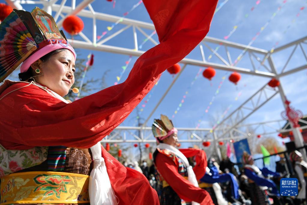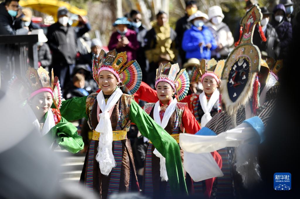 2月25日,演員在拉薩市宗角祿康文化廣場表演藏戲《卓娃桑姆》。新華社記者 張汝鋒 攝